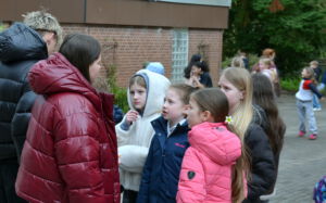 Die Kinder aus der 5 fragen den Beobachtern ein Loch in den Bauch.