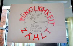 Die Jugendlichen der Benimm AG lassen die Blicke schweifen, ihnen entgeht nichts, auch nicht positives Verhalten. Freundlichkeit und Höflichkeit sind angesagt. Es wird freundlich gelächelt, gegrüßt, Türen werden aufgehalten. Sogar der Müll findet heute wie durch Zauberhand den Weg in den Eimer statt daneben.